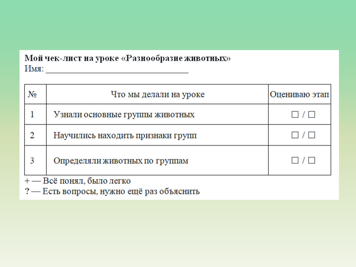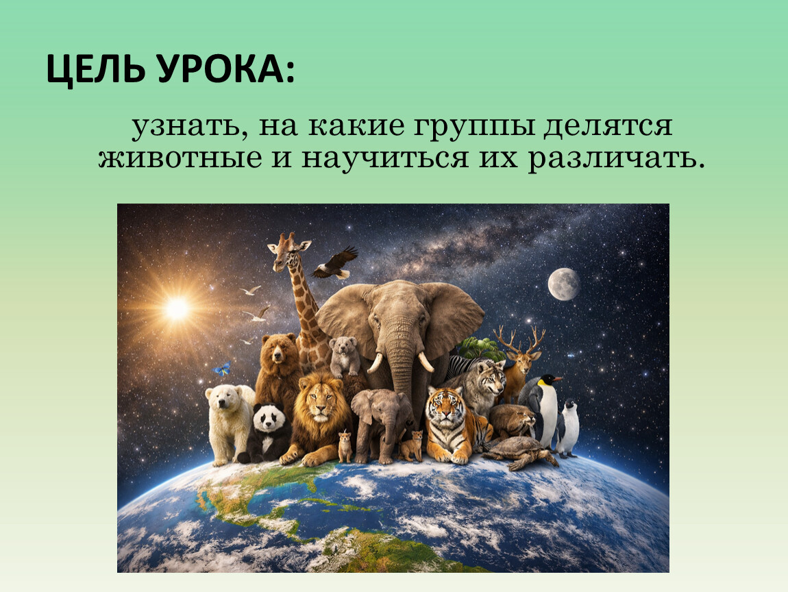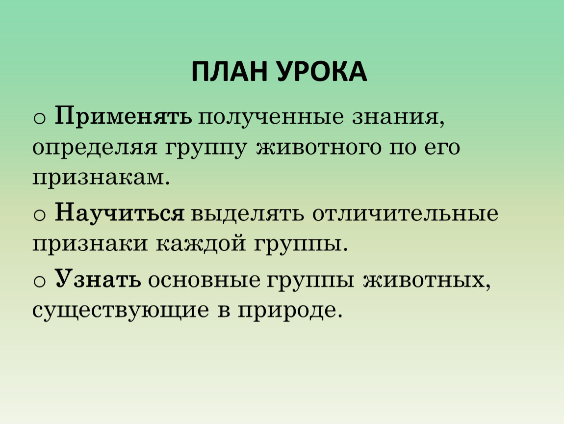 Применять полученные знания, определяя группу животного по его признакам.
