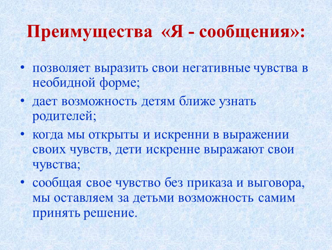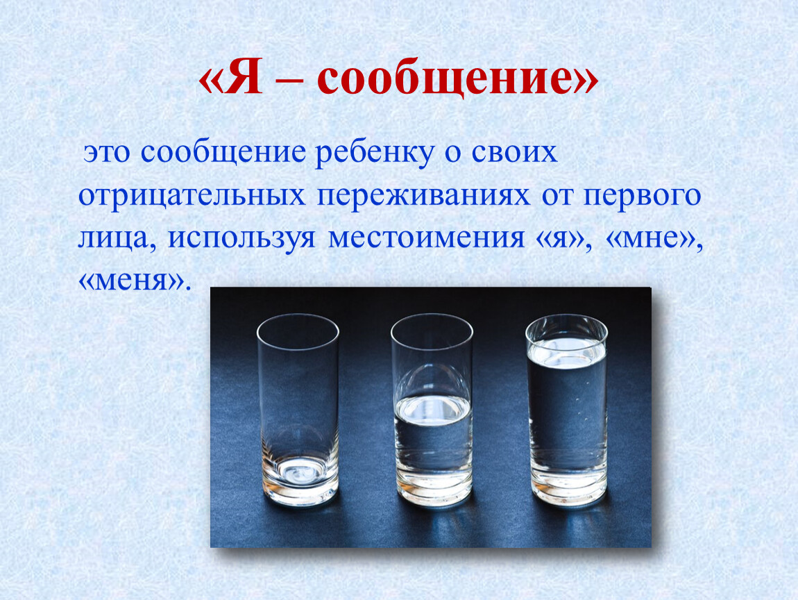 это сообщение ребенку о своих отрицательных переживаниях от первого лица, используя местоимения «я», «мне», «меня».