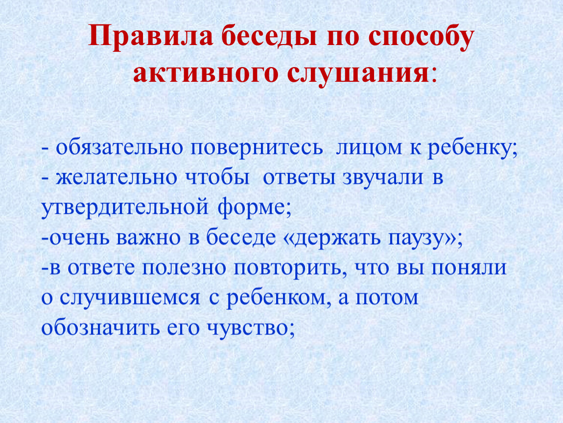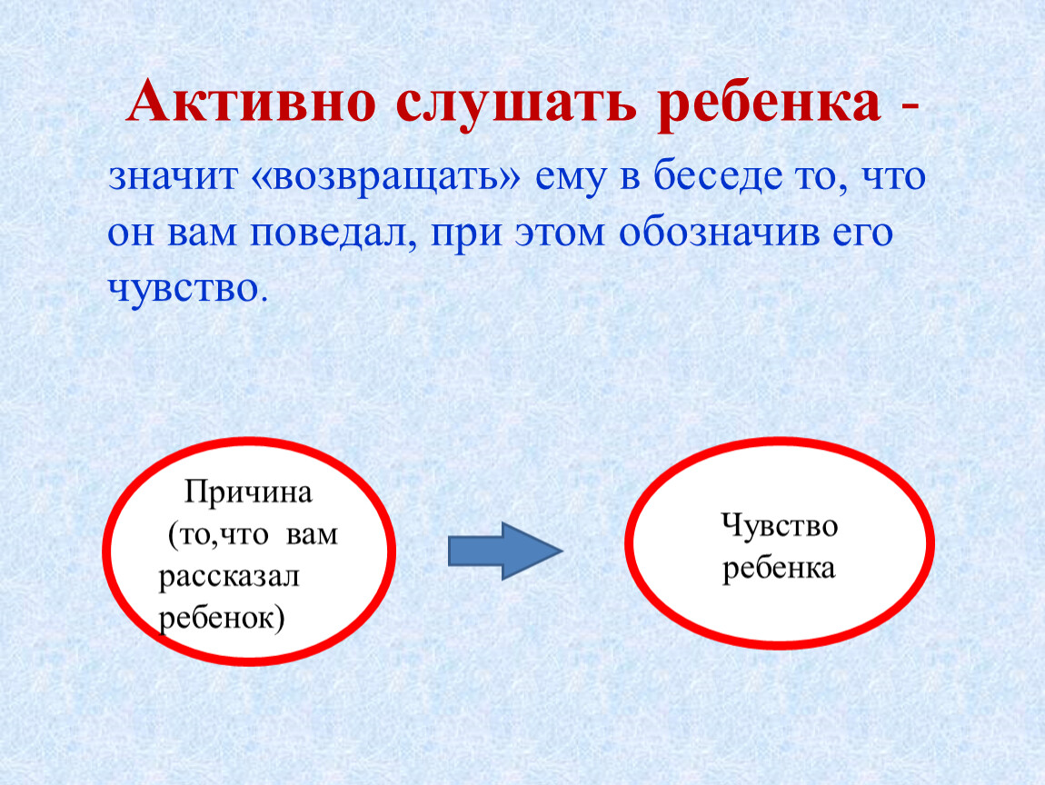 в ответе полезно повторить, что вы поняли о случившемся с ребенком, а потом обозначить его чувство;
