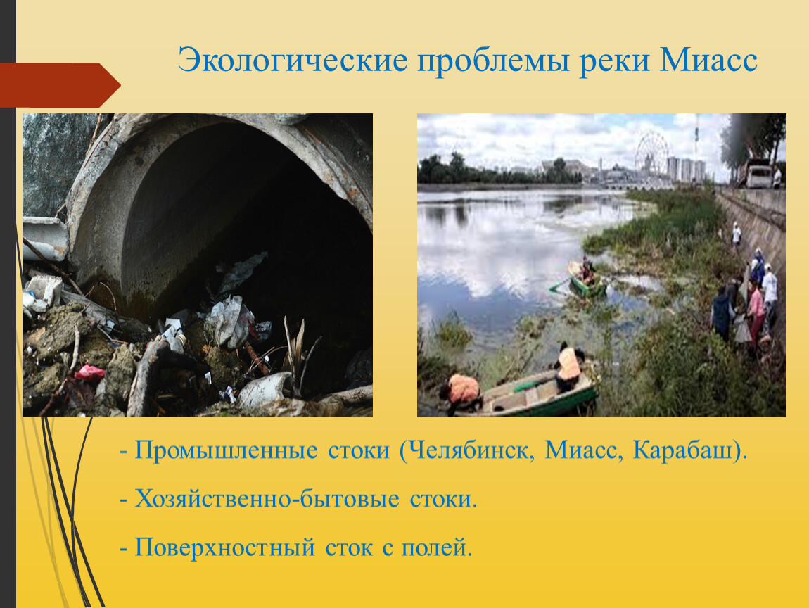 - Промышленные стоки (Челябинск, Миасс, Карабаш).