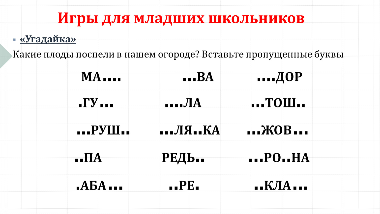 Игры для младших школьников