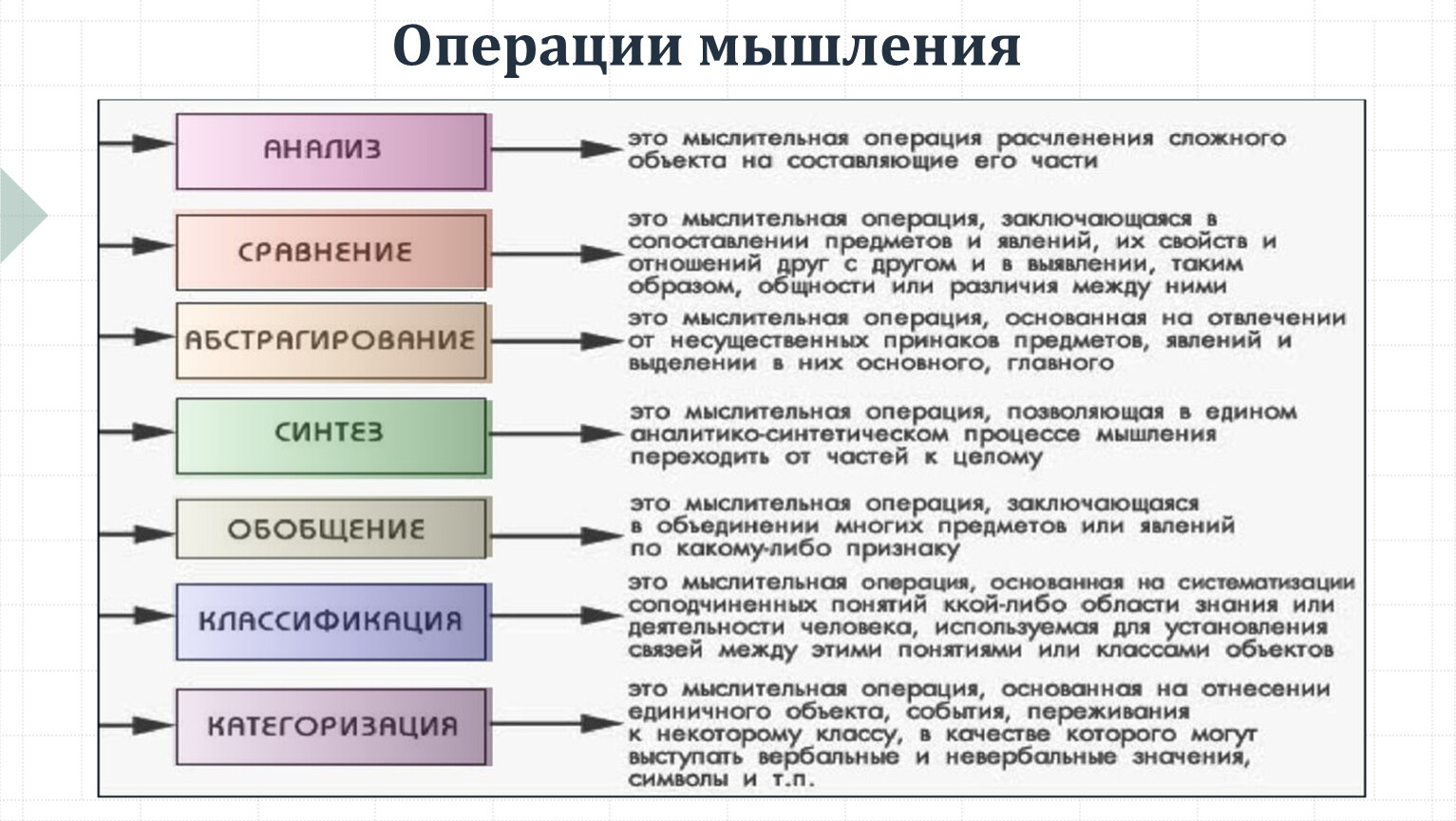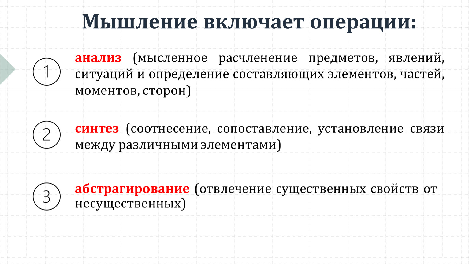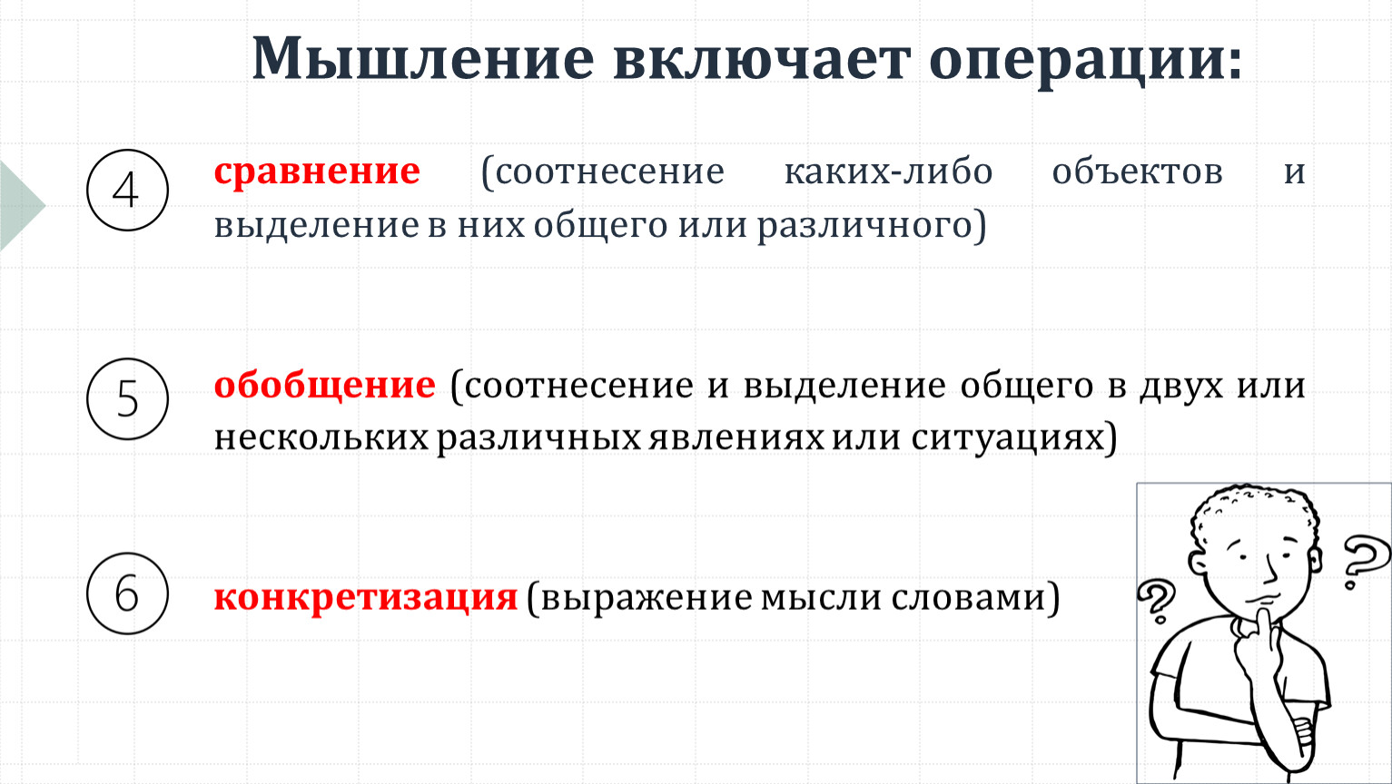 Мышление включает операции: