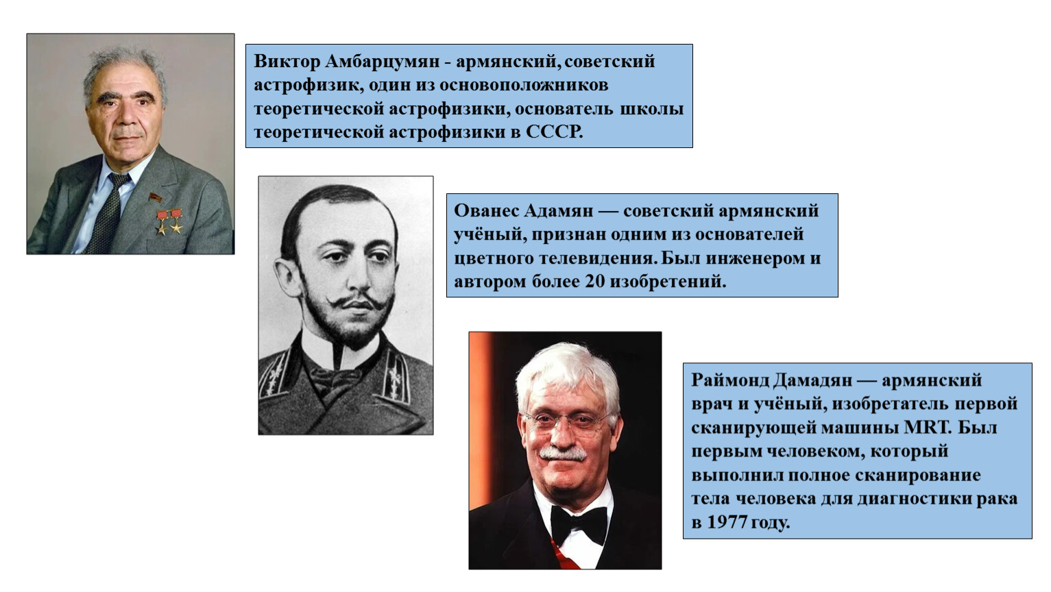 Ованес Адамян — советский армянский учёный, признан одним из основателей цветного телевидения. Был инженером и автором более 20 изобретений.
