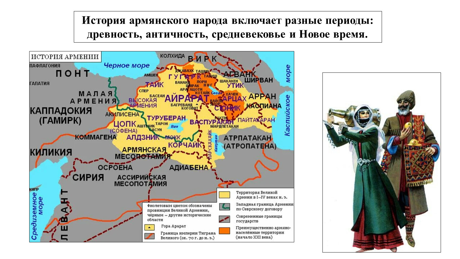 История армянского народа включает разные периоды: древность, античность, средневековье и Новое время.
