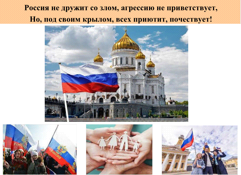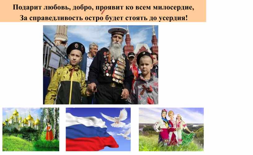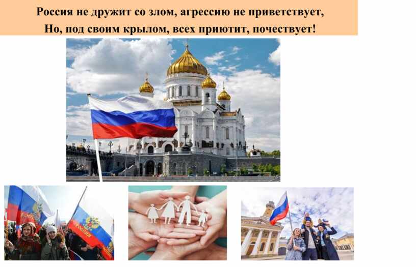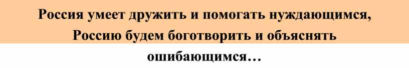 дружить и помогать нуждающимся, Россию будем боготворить и объяснять