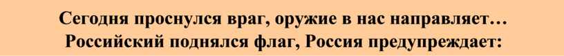 враг, оружие в нас направляет… Российский поднялся флаг, Россия предупреждает: