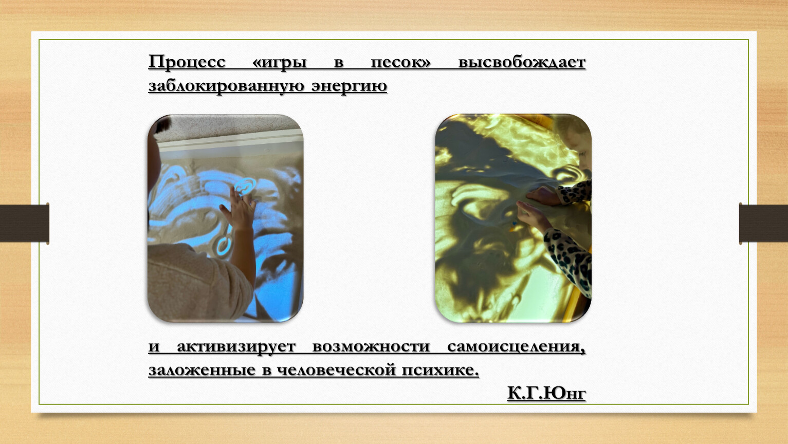 авторы книги «Чудеса на песке». Песочная игротерапия; Теоретическую основу песочной терапии создают идеи К. Г. Юнга и сформулированные им принципы аналитической психологии.