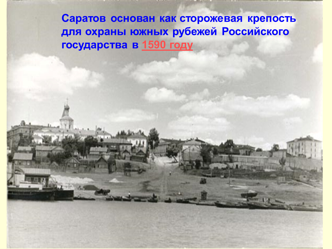 Саратов основан как сторожевая крепость для охраны южных рубежей Российского государства в 1590 году