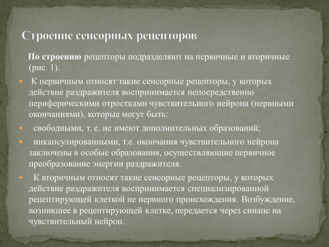 По строению рецепторы подразделяют на первичные и вторичные (рис. 1).