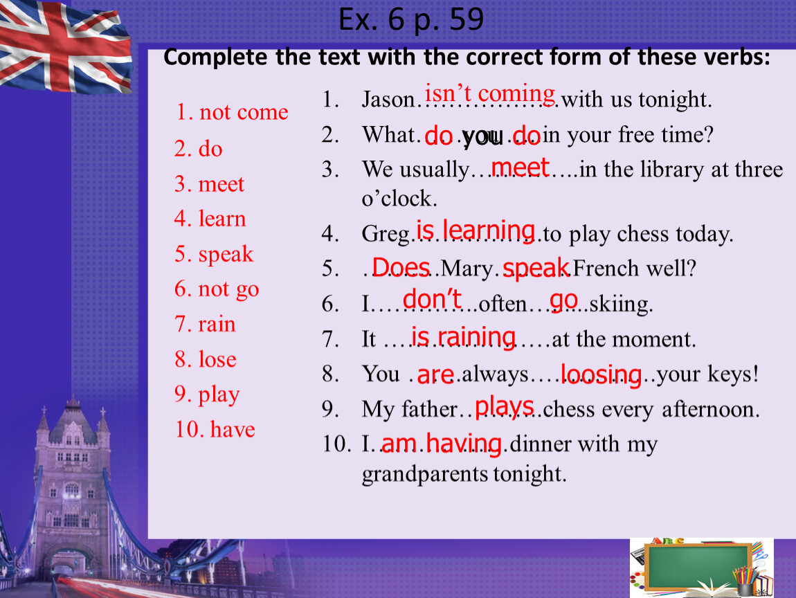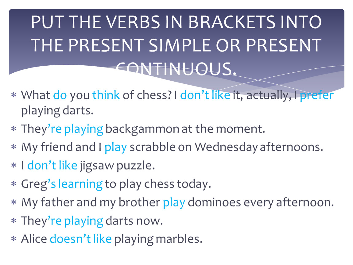 PUT THE VERBS IN BRACKETS INTO THE PRESENT SIMPLE OR PRESENT CONTINUOUS.