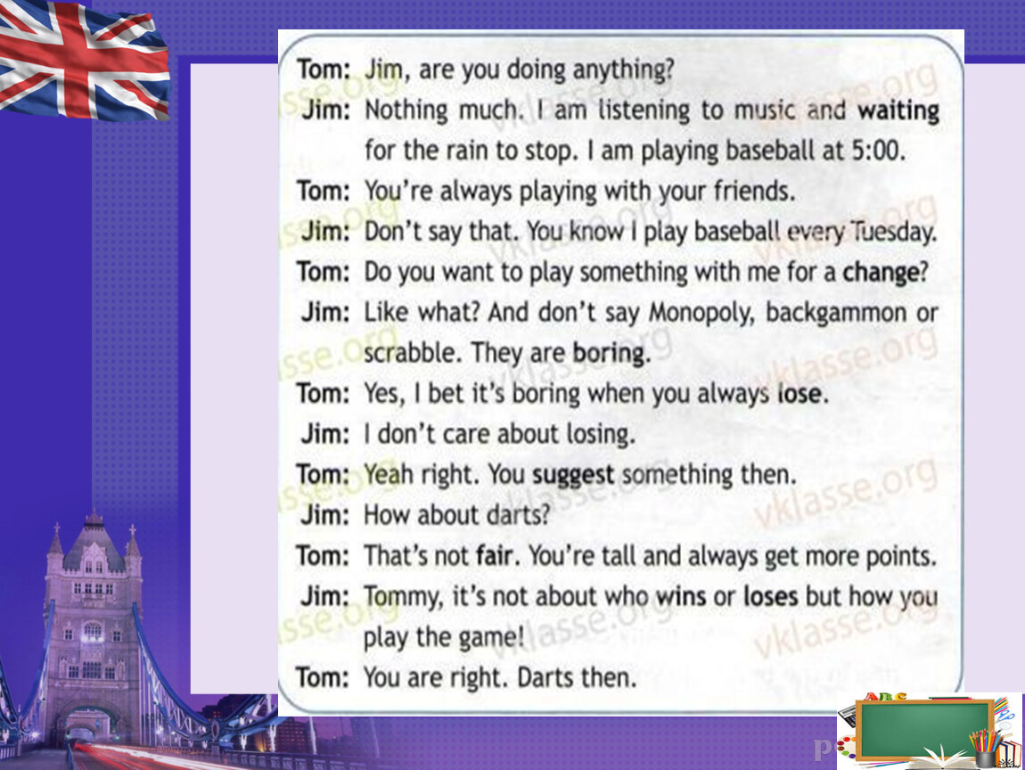 What do you think of chess? I don’t like it, actually, I prefer playing darts.