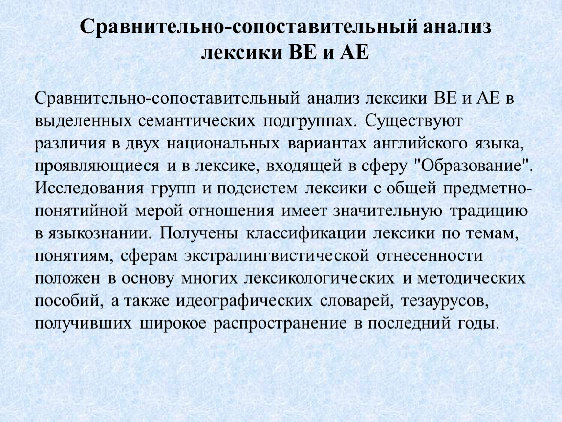 Сравнительно-сопоставительный анализ лексики BE и AE