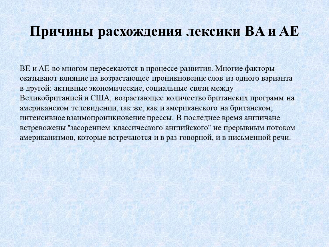 Причины расхождения лексики BA и AE