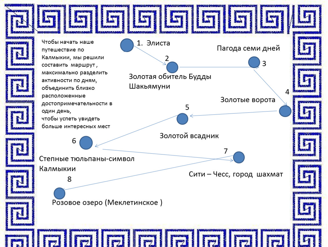 Чтобы начать наше путешествие по Калмыкии, мы решили составить маршрут , максимально разделить активности по дням, объединить близко расположенные достопримечательности в один день,