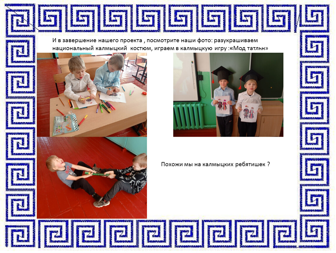 И в завершение нашего проекта , посмотрите наши фото: разукрашиваем национальный калмыцкий костюм, играем в калмыцкую игру :«Мод татлһн»