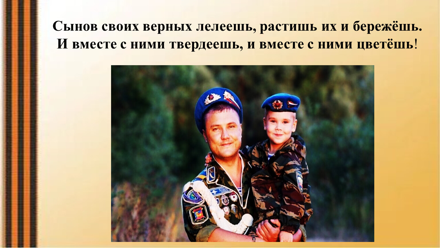 Сынов своих верных лелеешь, растишь их и бережёшь.