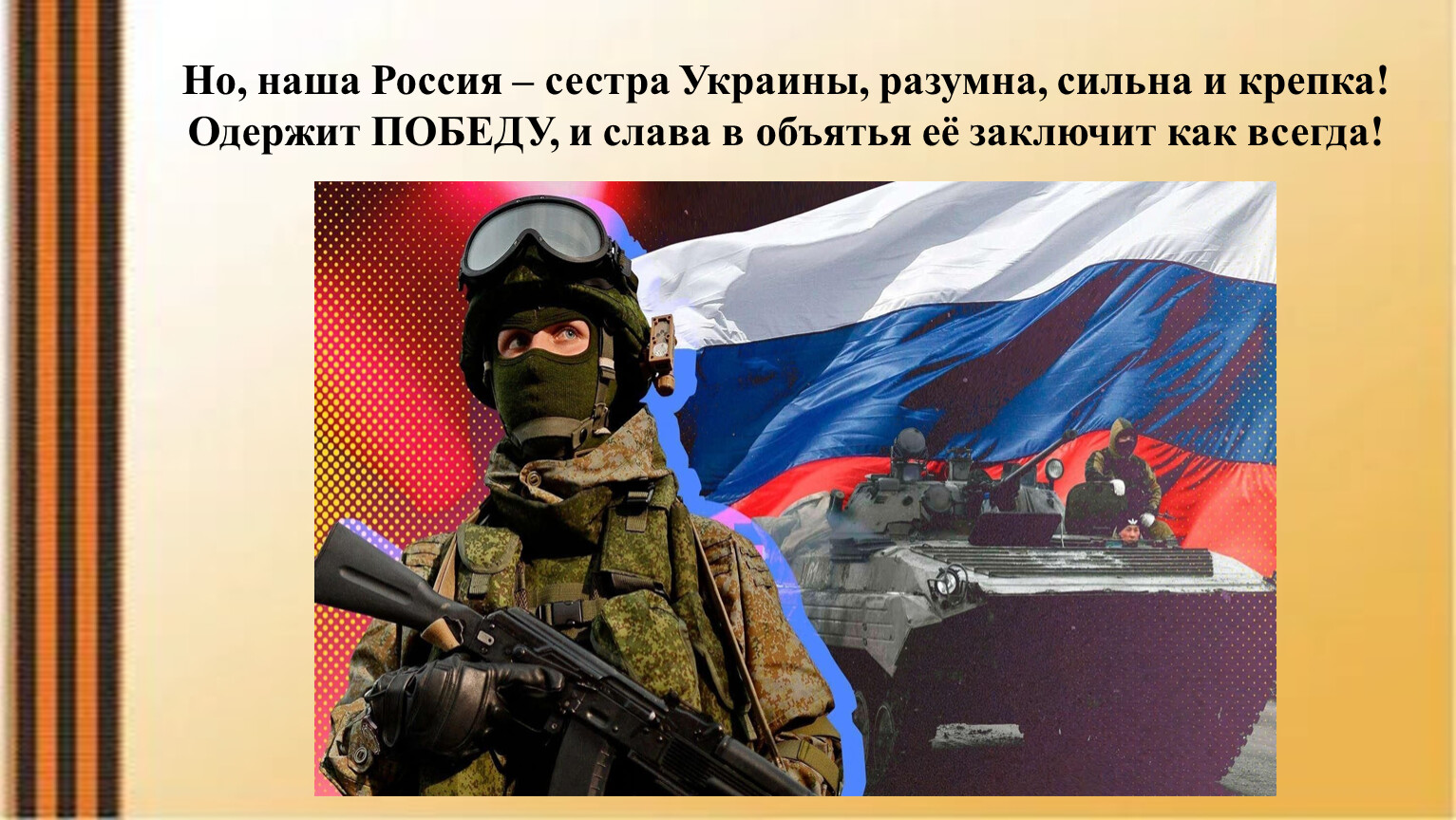 Но, наша Россия – сестра Украины, разумна, сильна и крепка!