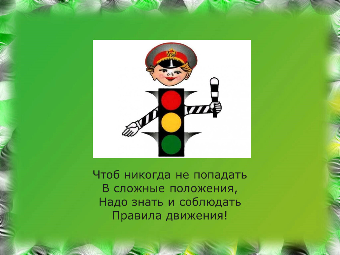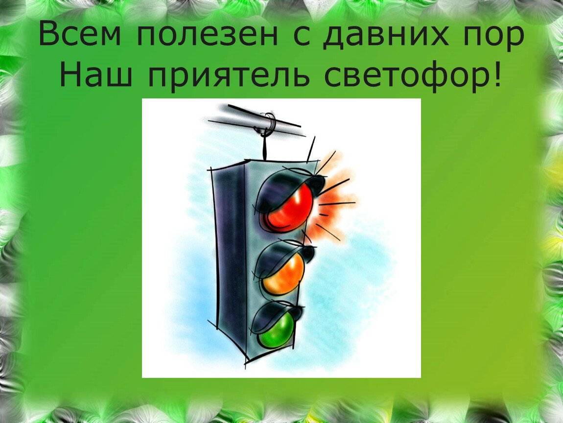 Загорелся красный свет- Пешеходу хода нет!Желтый свет дает сигнал, Чтобы ты зеленый ждал!Свет зеленый говорит – Для тебя проход открыт!