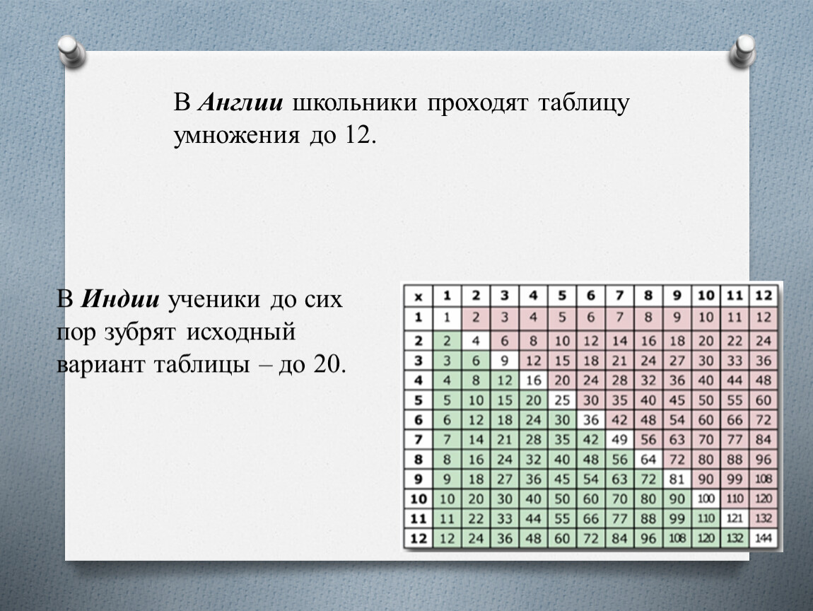 В Индии ученики до сих пор зубрят исходный вариант таблицы – до 20.
