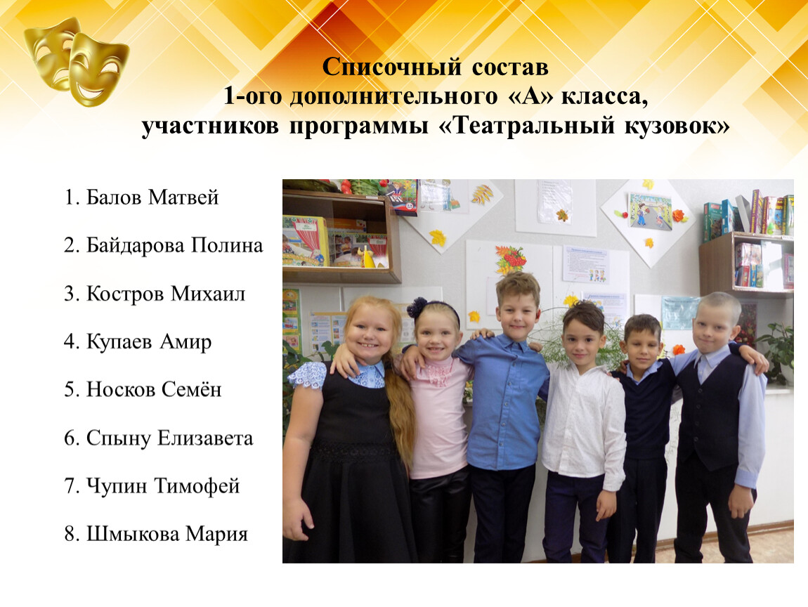 Списочный состав 1-ого дополнительного «А» класса,участников программы «Театральный кузовок»