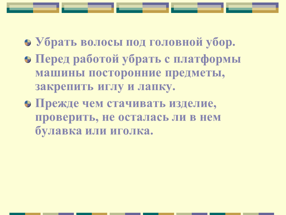Прежде чем стачивать изделие, проверить, не осталась ли в нем булавка или иголка.