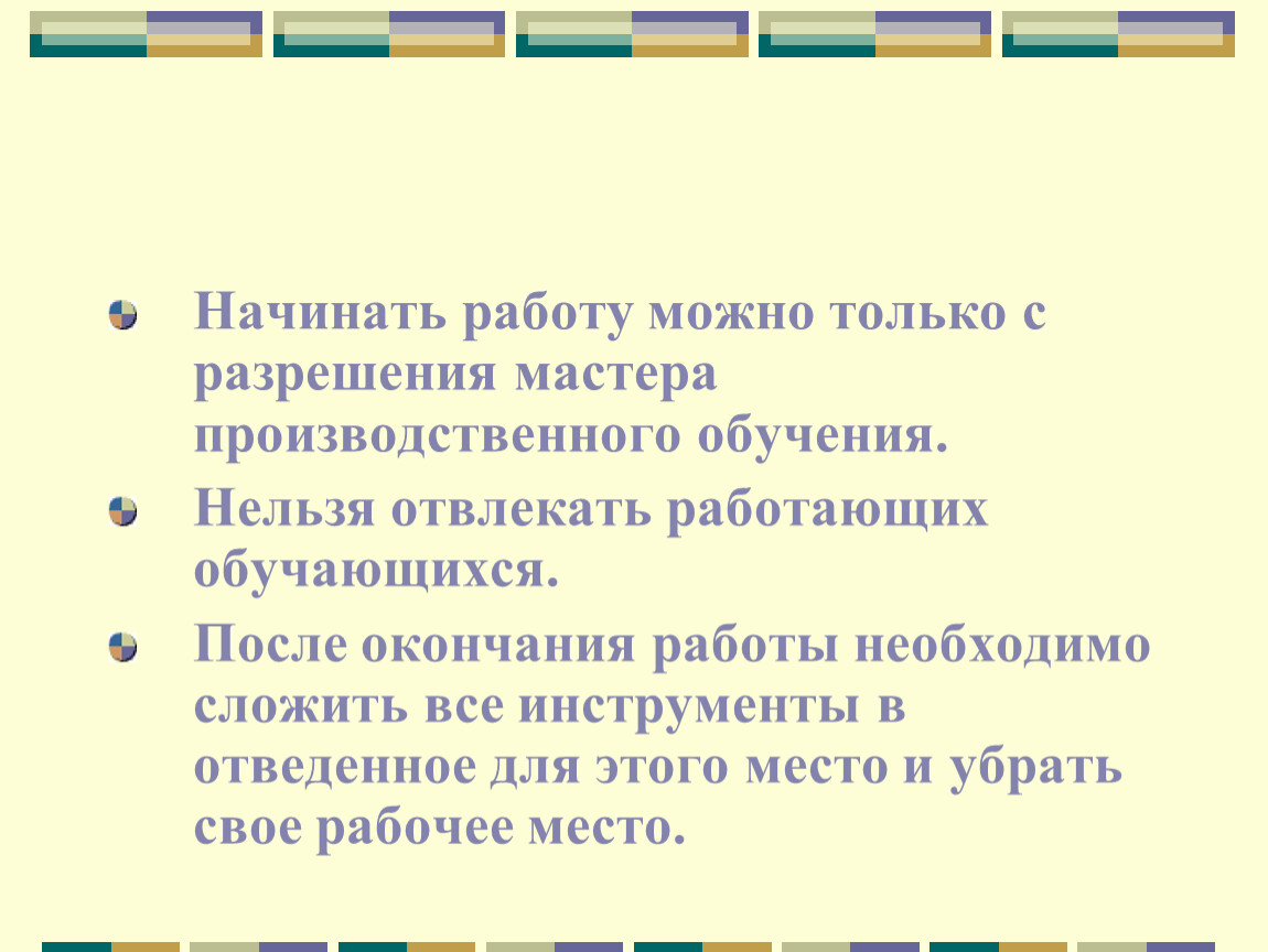 Начинать работу можно только с разрешения мастера производственного обучения.