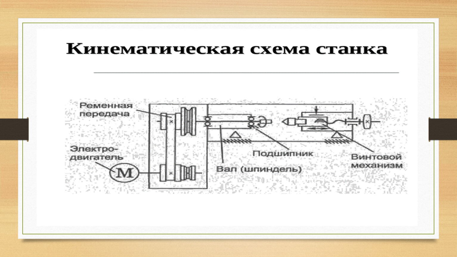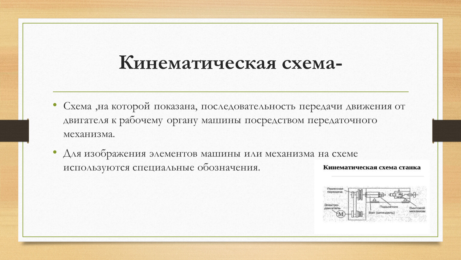 Схема ,на которой показана, последовательность передачи движения от двигателя к рабочему органу машины посредством передаточного механизма.