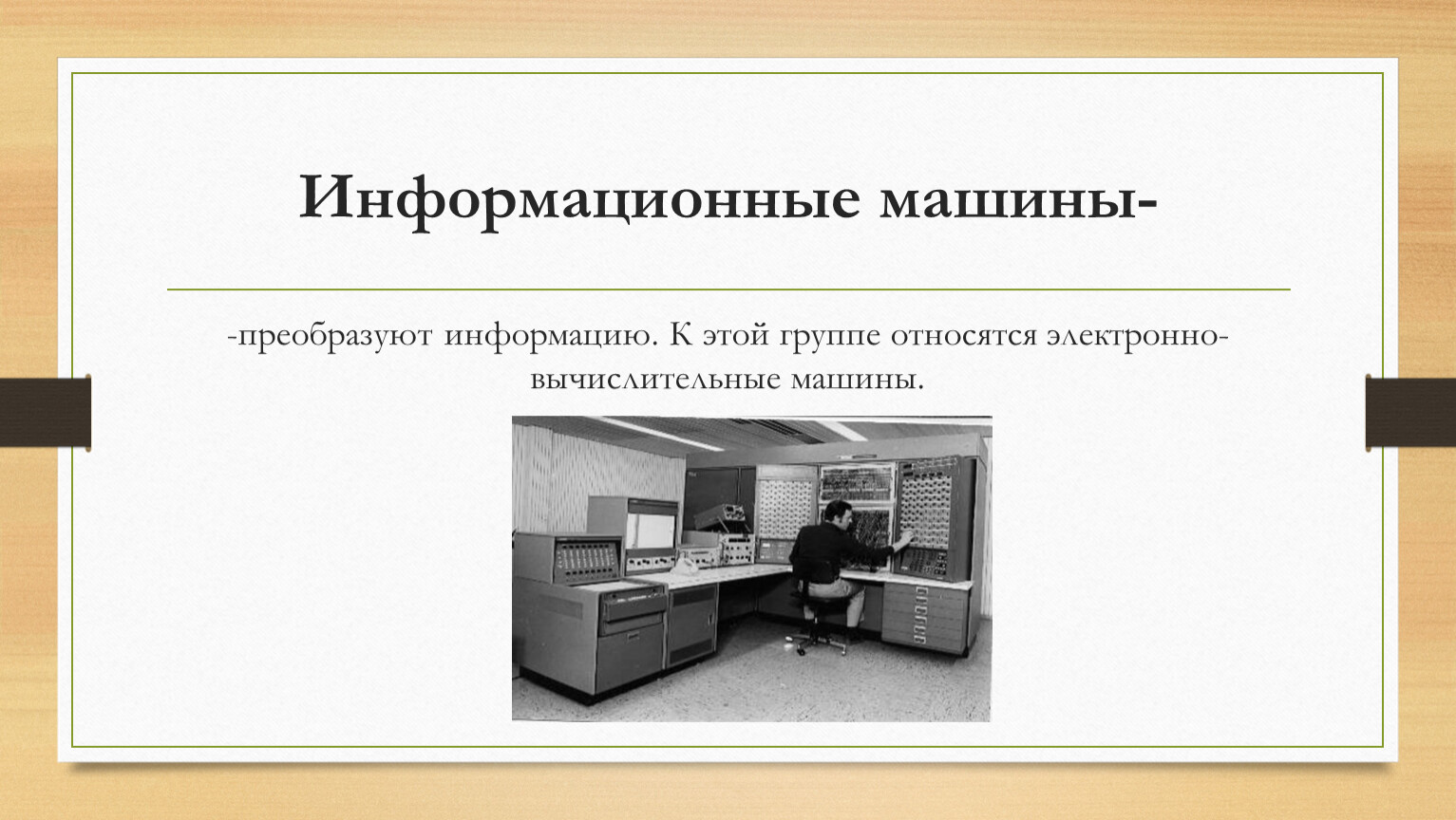 -преобразуют информацию. К этой группе относятся электронно-вычислительные машины.