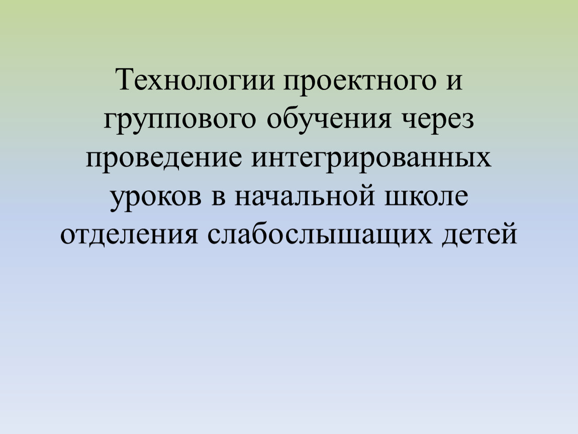 Технологии проектного и группового обучения через проведение интегрированных уроков в начальной школе отделения слабослышащих детей