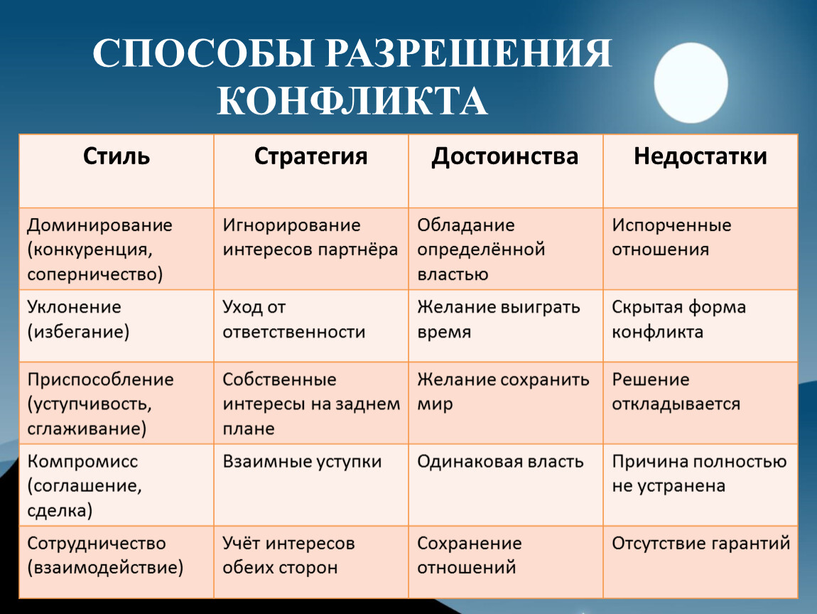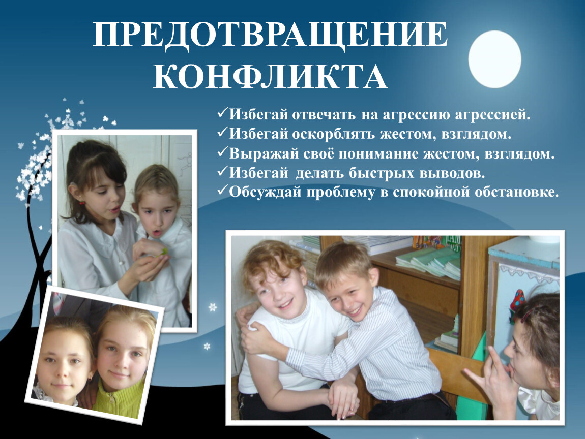 Приёмы для предотвращения конфликтов.