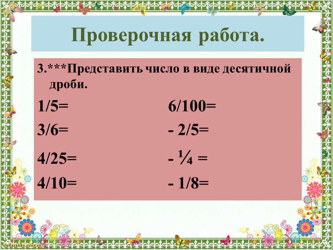 *** Уметь переводить обыкновенную дробь в десятичную.