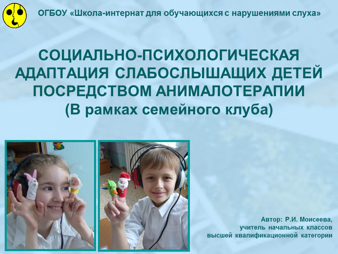 СОЦИАЛЬНО-ПСИХОЛОГИЧЕСКАЯ АДАПТАЦИЯ СЛАБОСЛЫШАЩИХ ДЕТЕЙ ПОСРЕДСТВОМ АНИМАЛОТЕРАПИИ(В рамках семейного клуба)