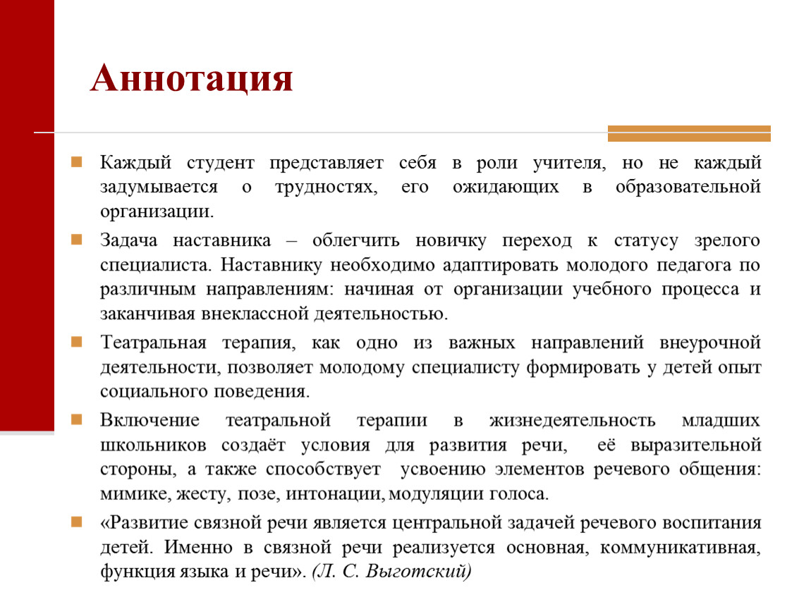 Театральная терапия, как одно из важных направлений внеурочной деятельности, позволяет молодому специалисту формировать у детей опыт социального поведения.