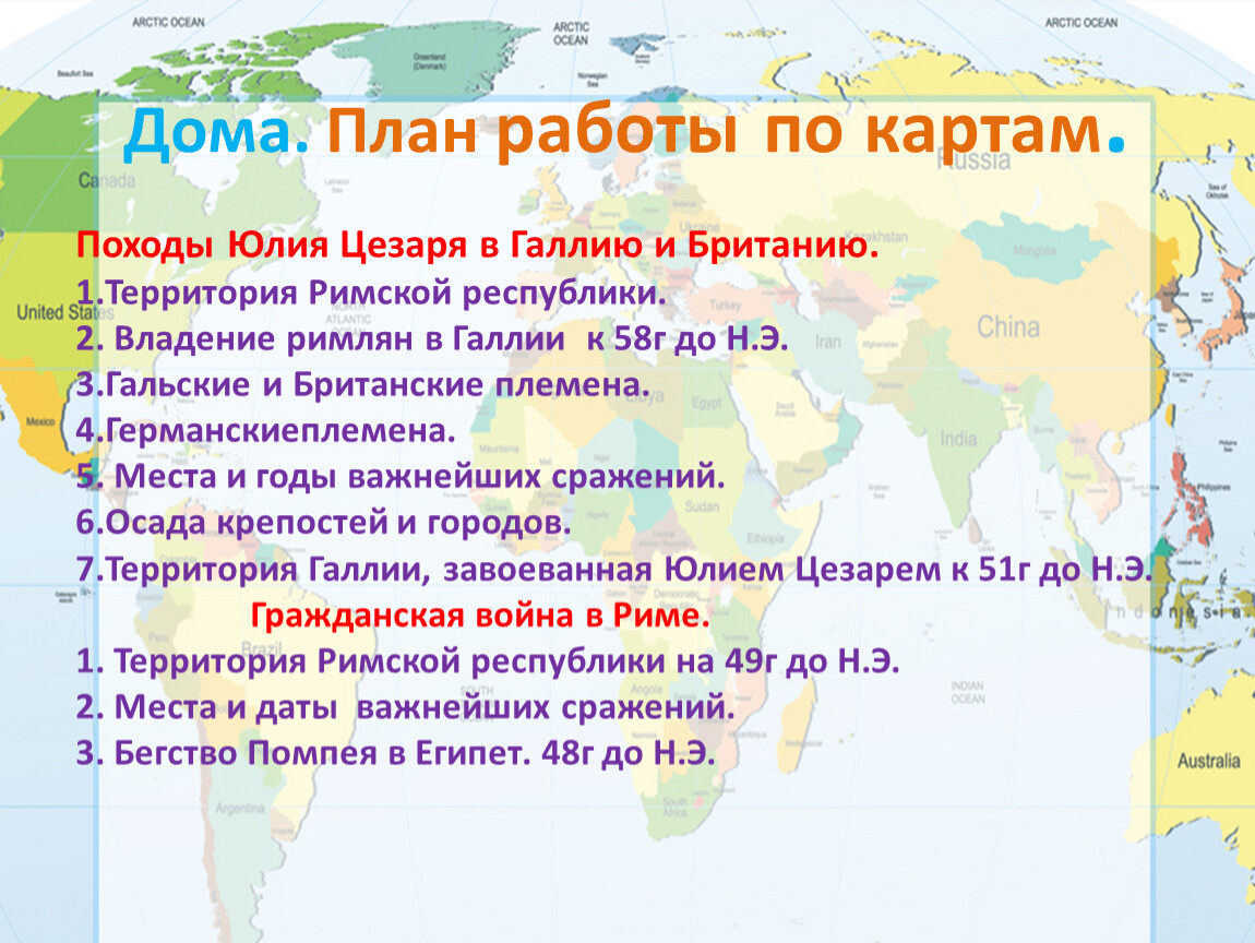 Дома. План работы по картам.