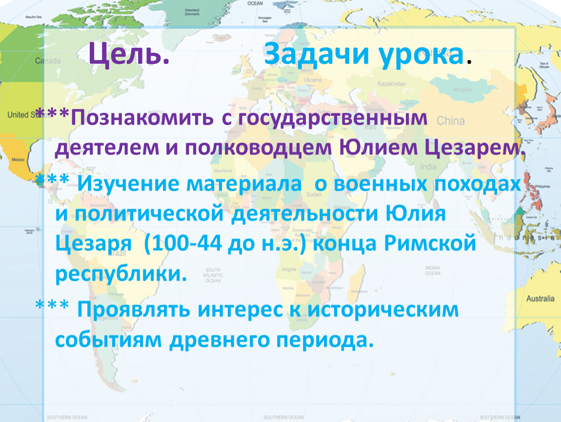 *** Изучение материала о военных походах и политической деятельности Юлия Цезаря (100-44 до н.э.) конца Римской республики.