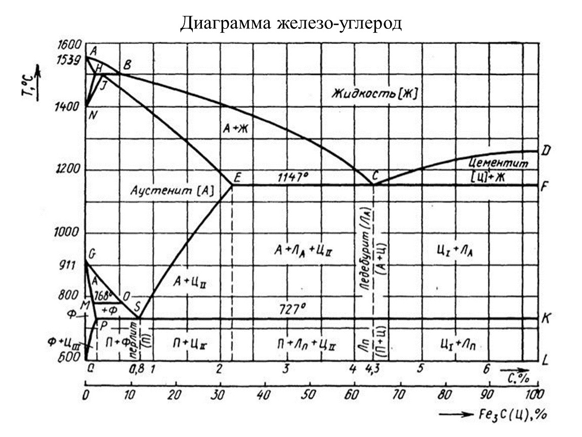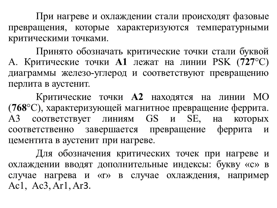 Принято обозначать критические точки стали буквой А. Критические точки А1 лежат на линии PSK (727°С) диаграммы железо-углерод и соответствуют превращению перлита в аустенит.