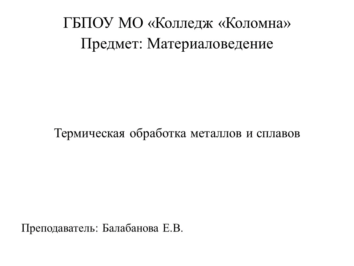 ГБПОУ МО «Колледж «Коломна»Предмет: Материаловедение