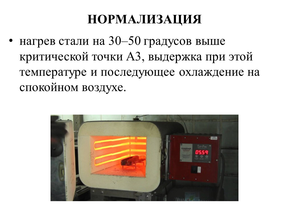 нагрев стали на 30–50 градусов выше критической точки А3, выдержка при этой температуре и последующее охлаждение на спокойном воздухе.