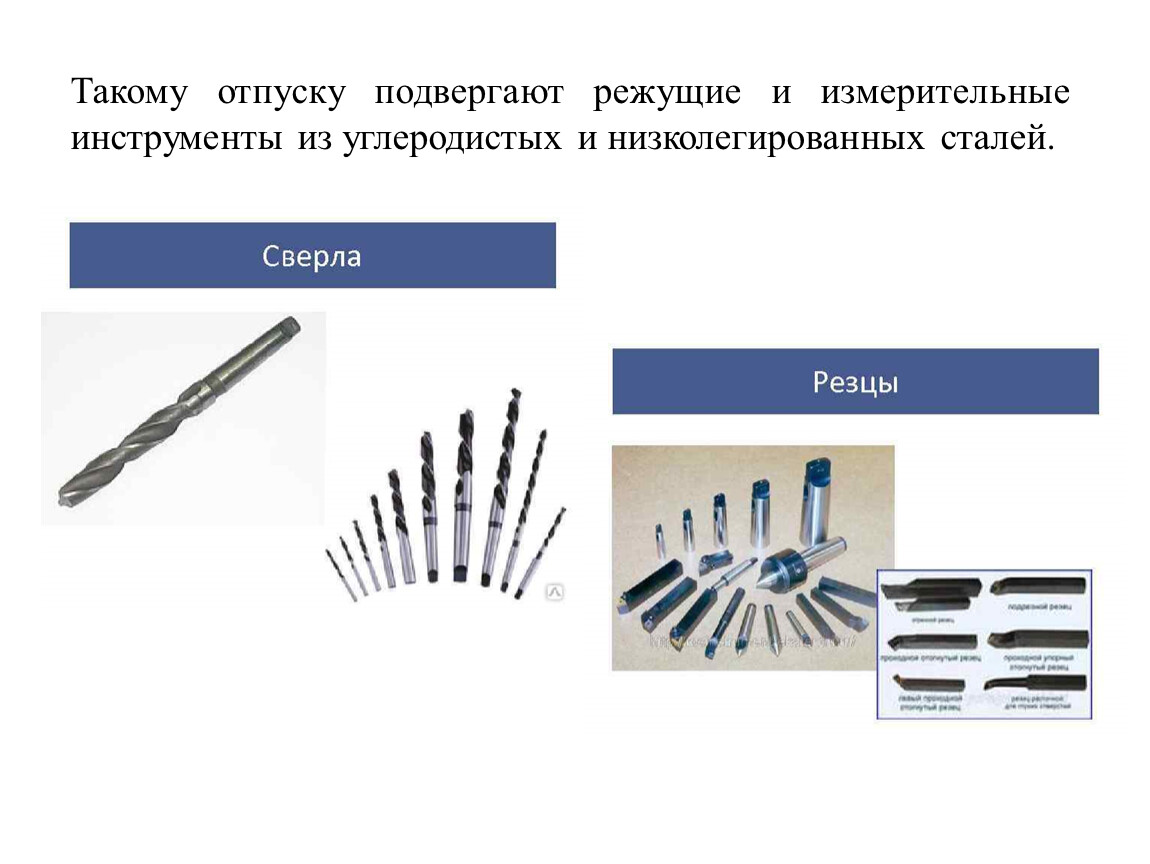 Такому отпуску подвергают режущие и измерительные инструменты из углеродистых и низколегированных сталей.