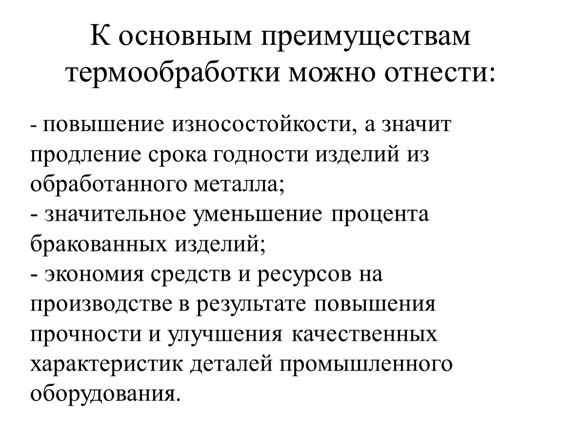 К основным преимуществам термообработки можно отнести: