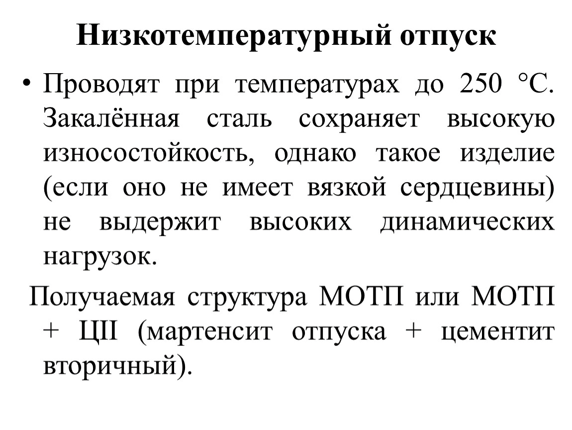 Получаемая структура МОТП или МОТП + ЦII (мартенсит отпуска + цементит вторичный).