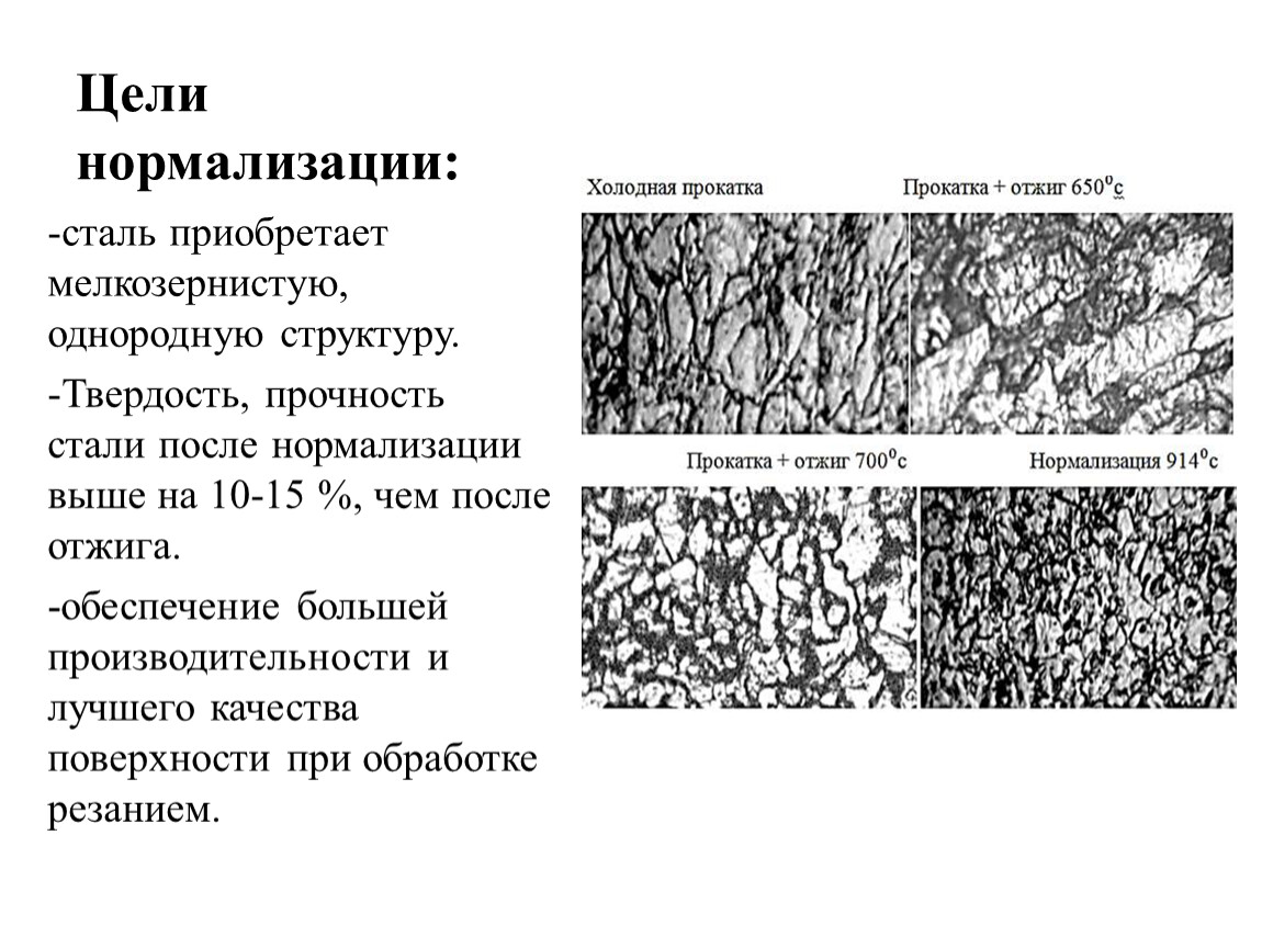 Твердость, прочность стали после нормализации выше на 10-15 %, чем после отжига.