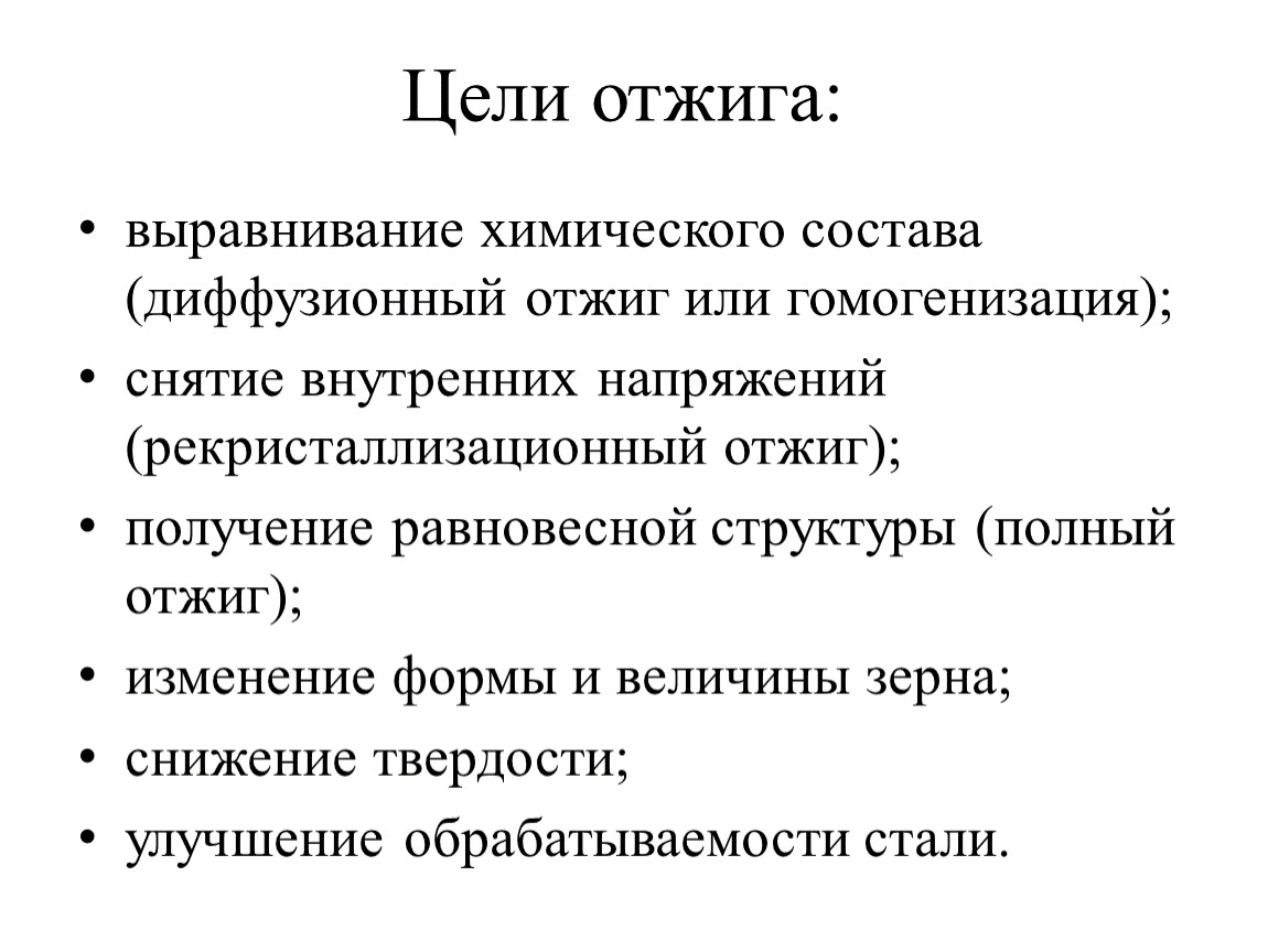 Цели отжига: