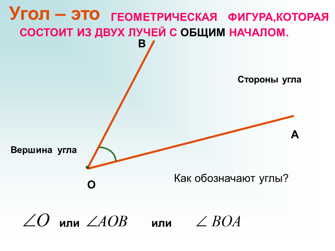 СОСТОИТ ИЗ ДВУХ ЛУЧЕЙ С ОБЩИМ НАЧАЛОМ.