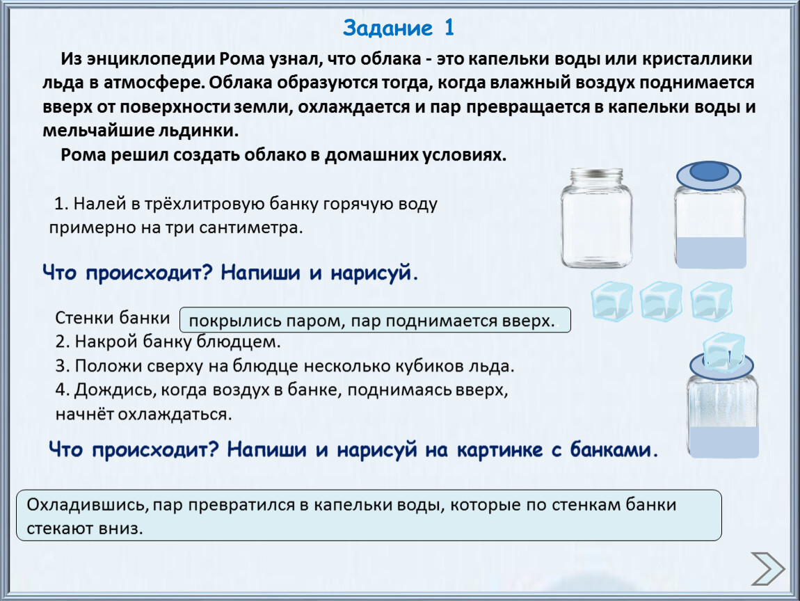Что происходит? Напиши и нарисуй на картинке с банками.