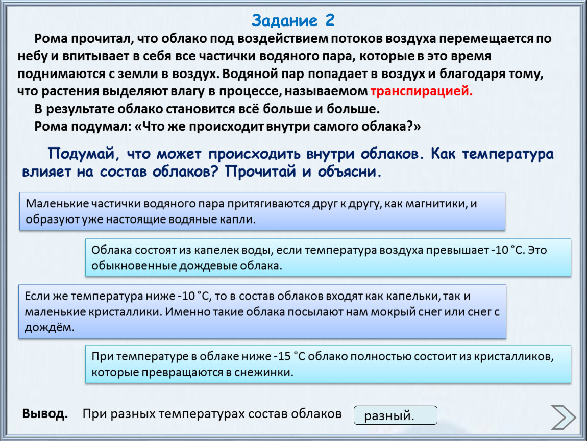 Подумай, что может происходить внутри облаков. Как температура влияет на состав облаков? Прочитай и объясни.