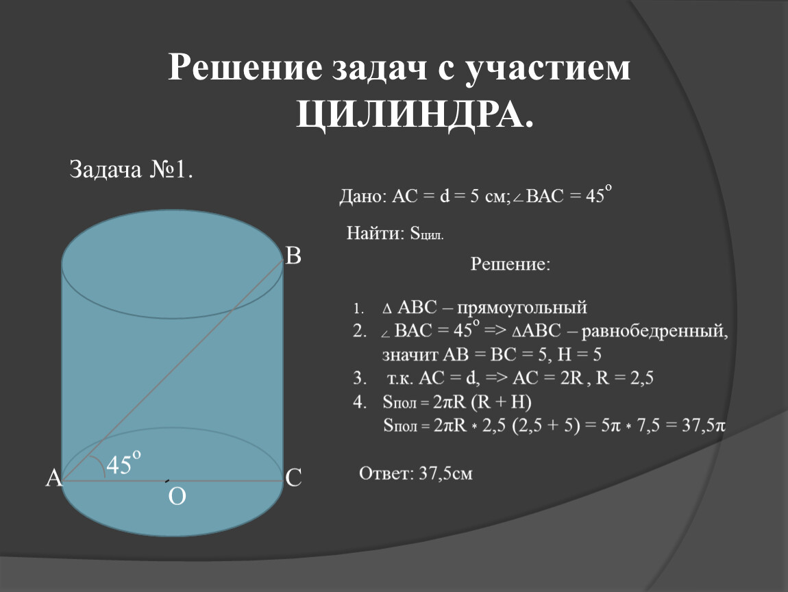 Sпол = 2πR * 2,5 (2,5 + 5) = 5π * 7,5 = 37,5π