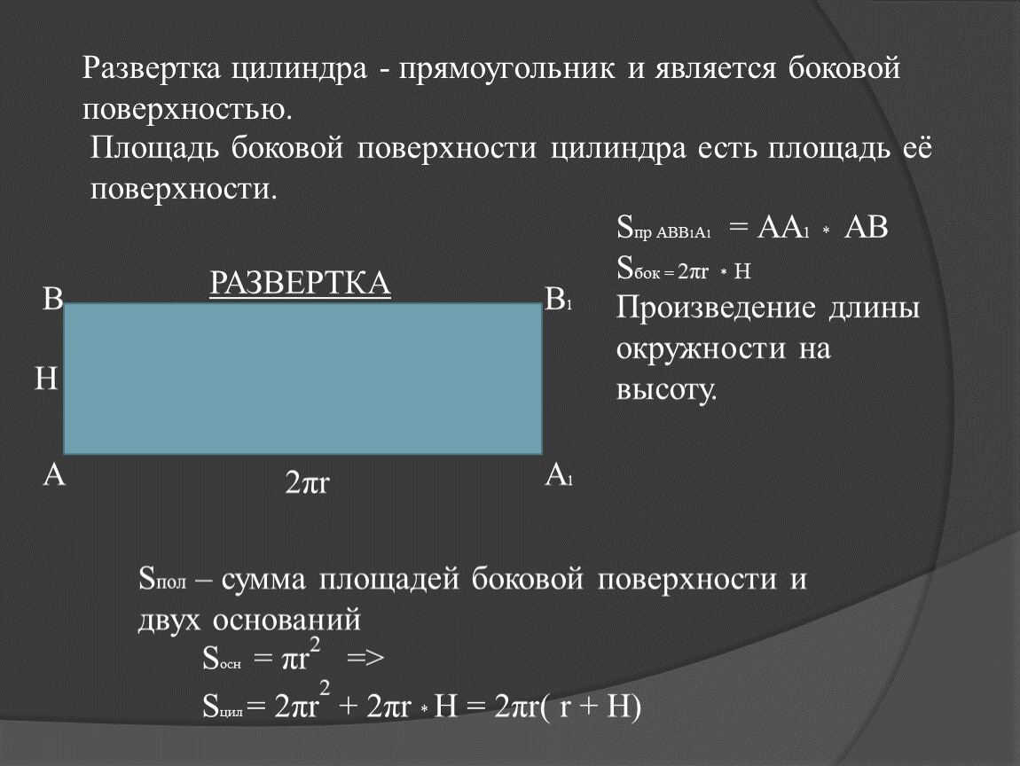 Площадь боковой поверхности цилиндра есть площадь её поверхности.