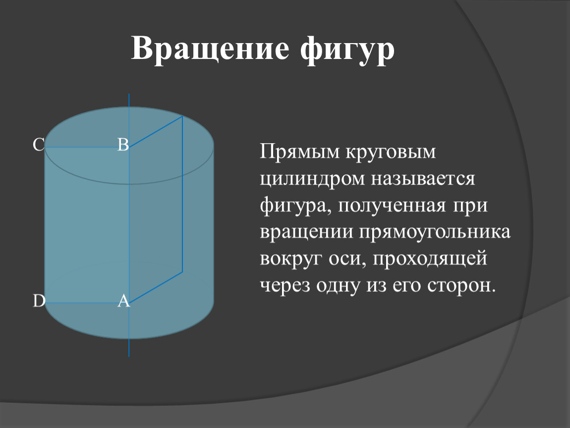 Прямым круговым цилиндром называется фигура, полученная при вращении прямоугольника вокруг оси, проходящей через одну из его сторон.