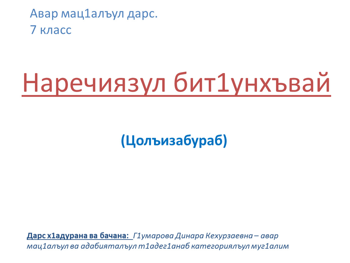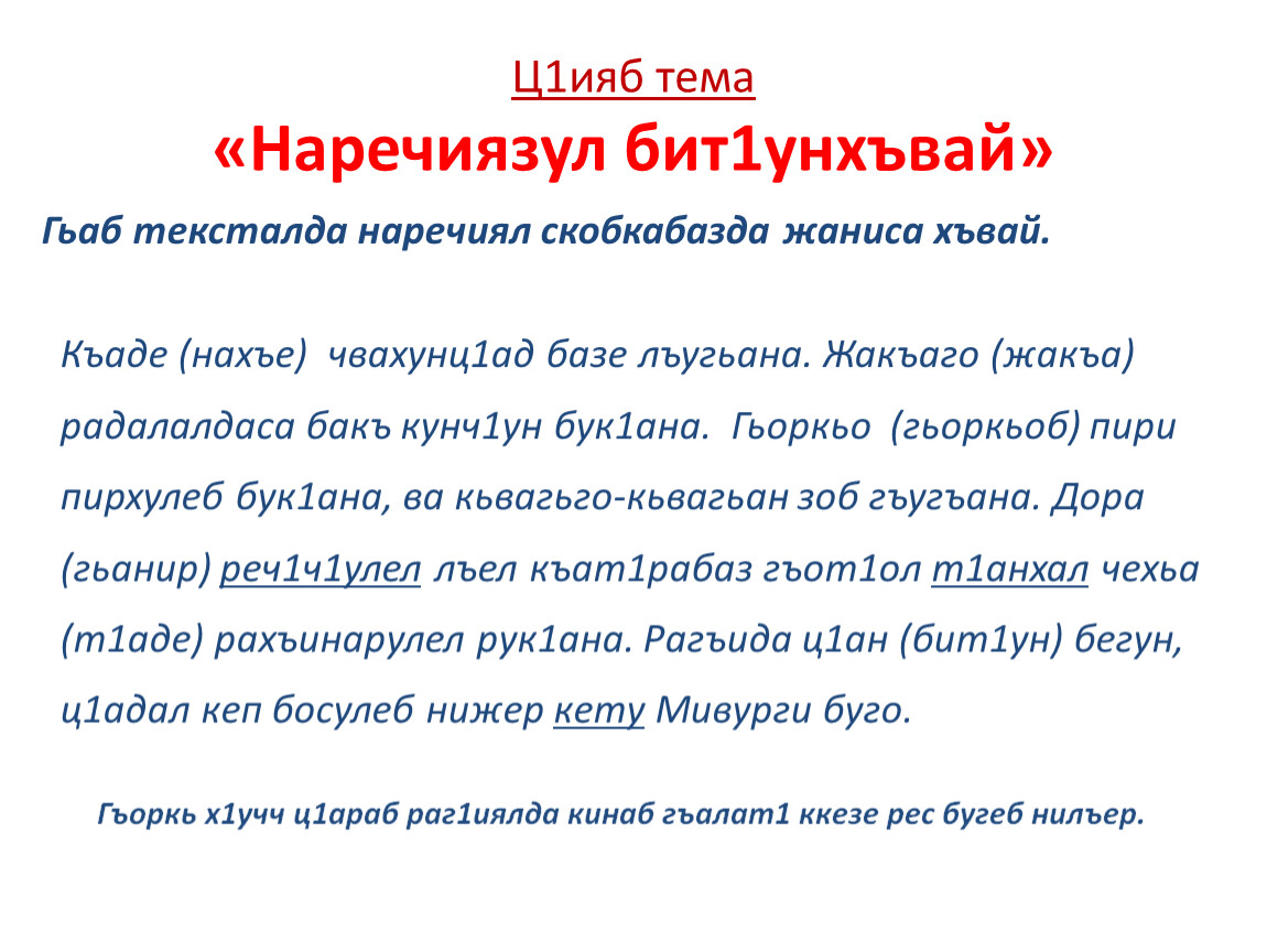 Ц1ияб тема «Наречиязул бит1унхъвай»